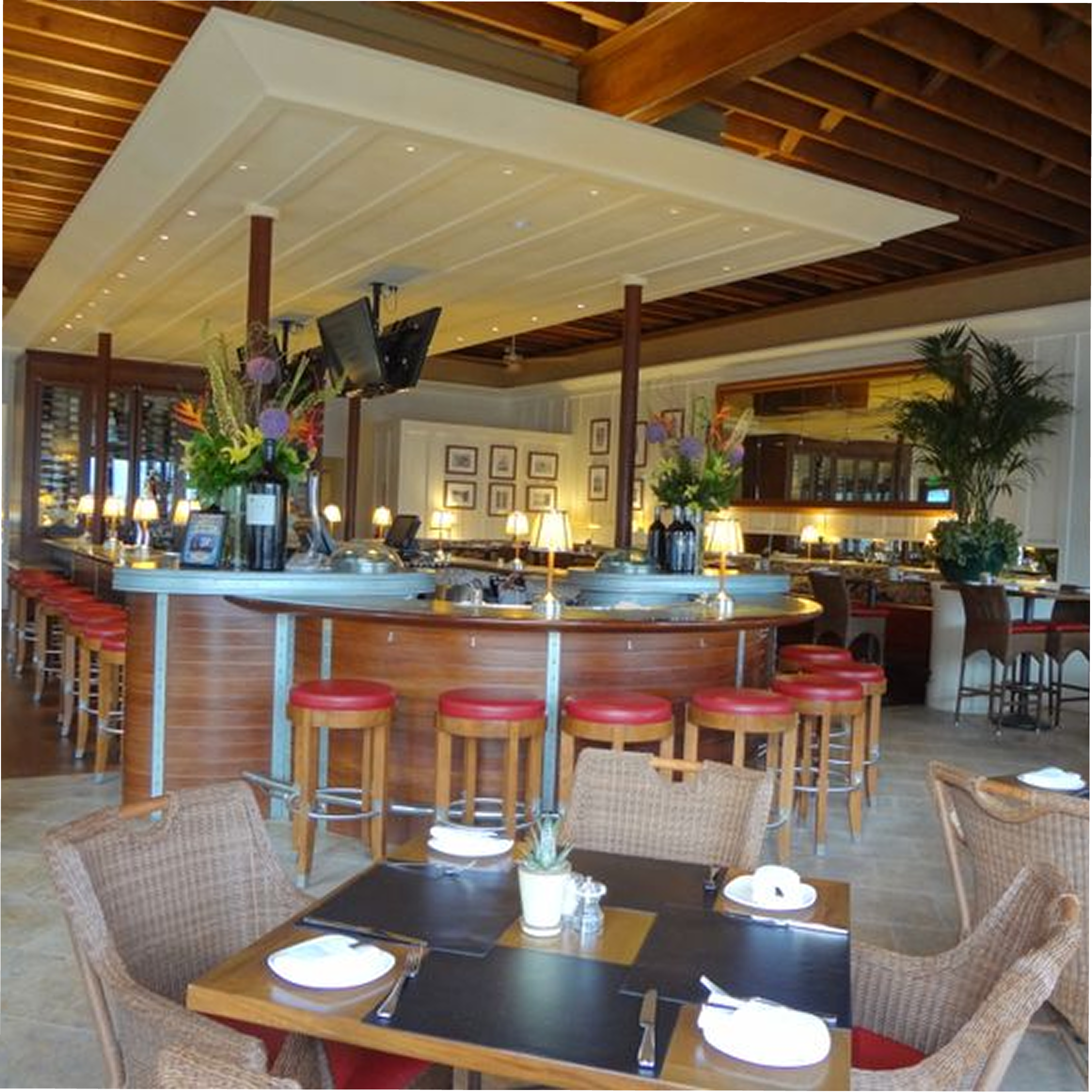 Premium-quality sushi and sashimi showcase the freshest seafood available. The teppanyaki chefs demonstrate impressive skills while preparing meals tableside. The elegant setting and meticulous presentation reflect traditional Japanese dining culture.