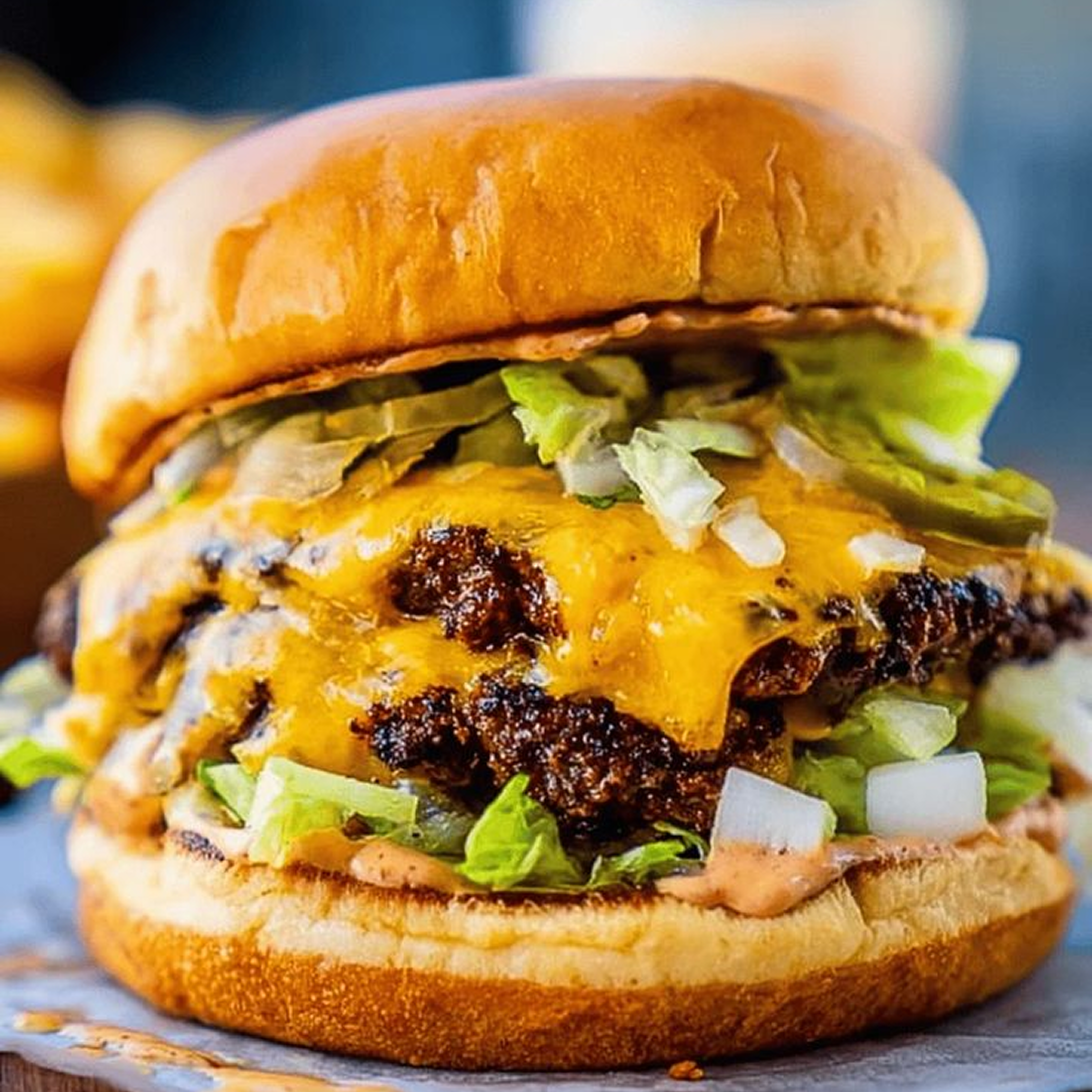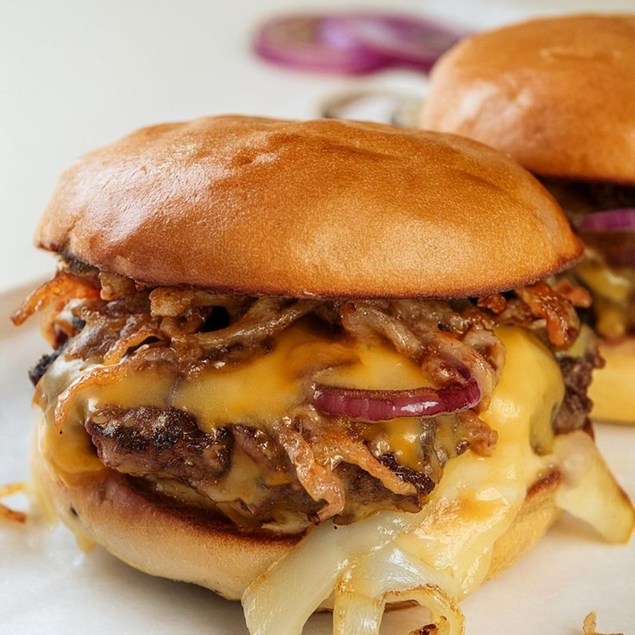 • Oklahoma Smash: Smashed patty with thinly sliced onions pressed into meat
